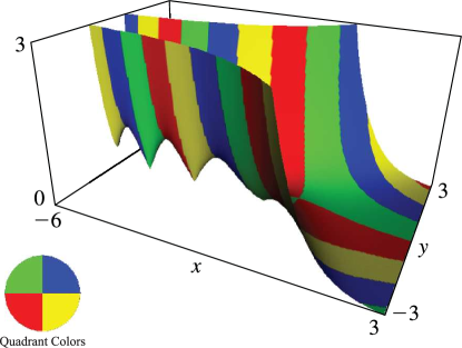 In the graphics shown in this subsection, height corresponds to the absolute value of the function and color to the phase. See also About Color Map.