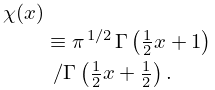 9.7.3 χ(x)π1/2Γ(12x+1)/Γ(12x+12).