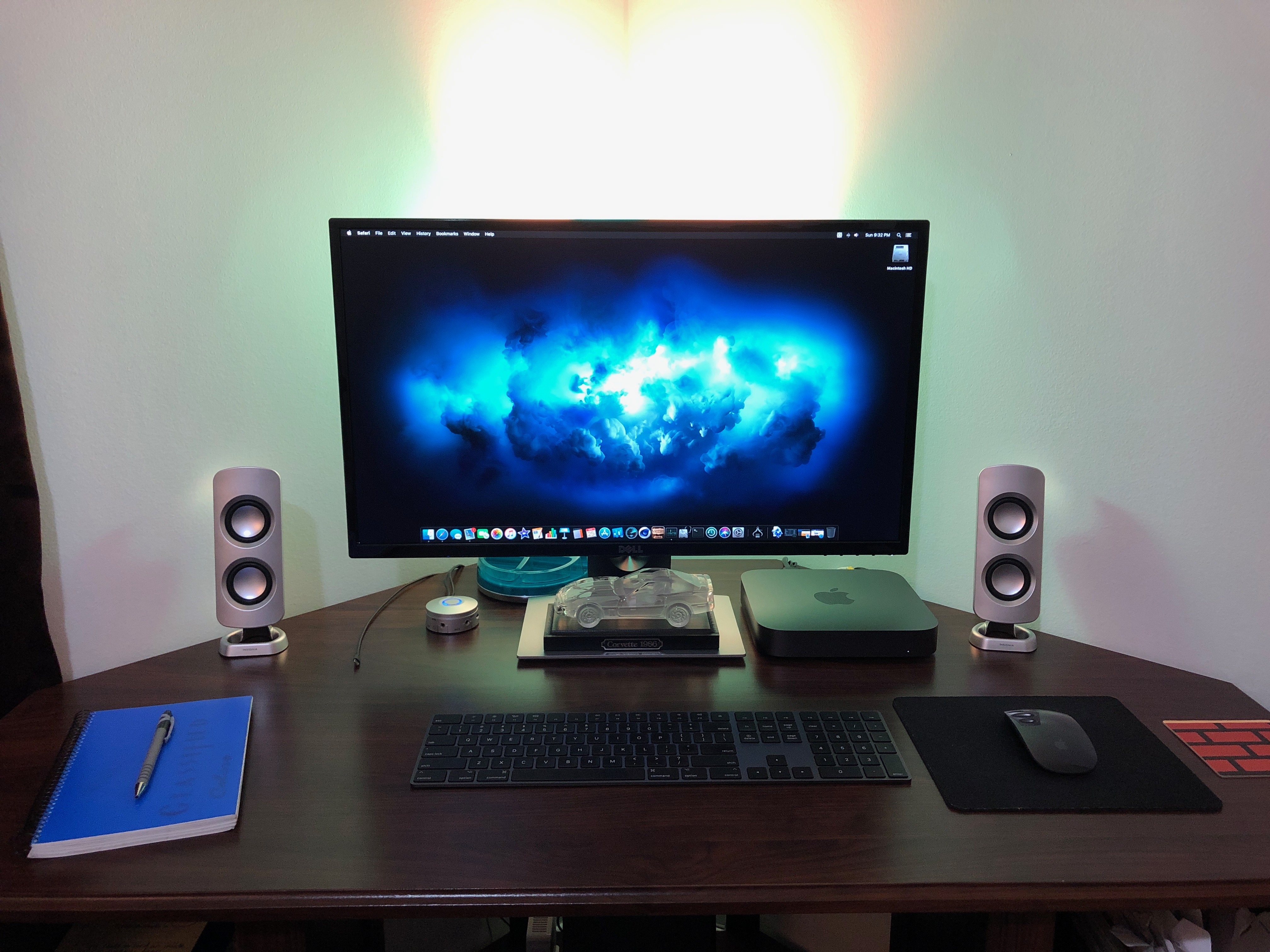 Thought it would be neat to see how everyone has their Minis setup. The thread on Johnathan Morrison's setup got me wondering how everyone here has their Minis arranged on their desk and what components they use. I'll go first of course: