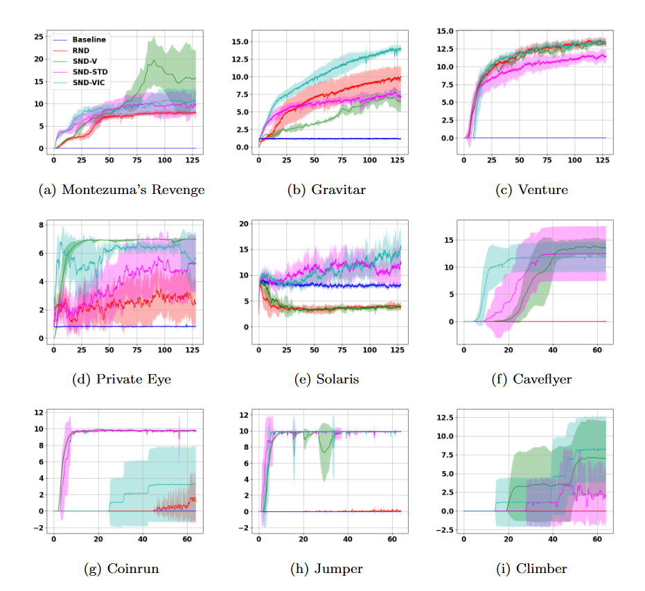 Environment | Baseline | RND | SND-V | SND-STD | SND-VIC |