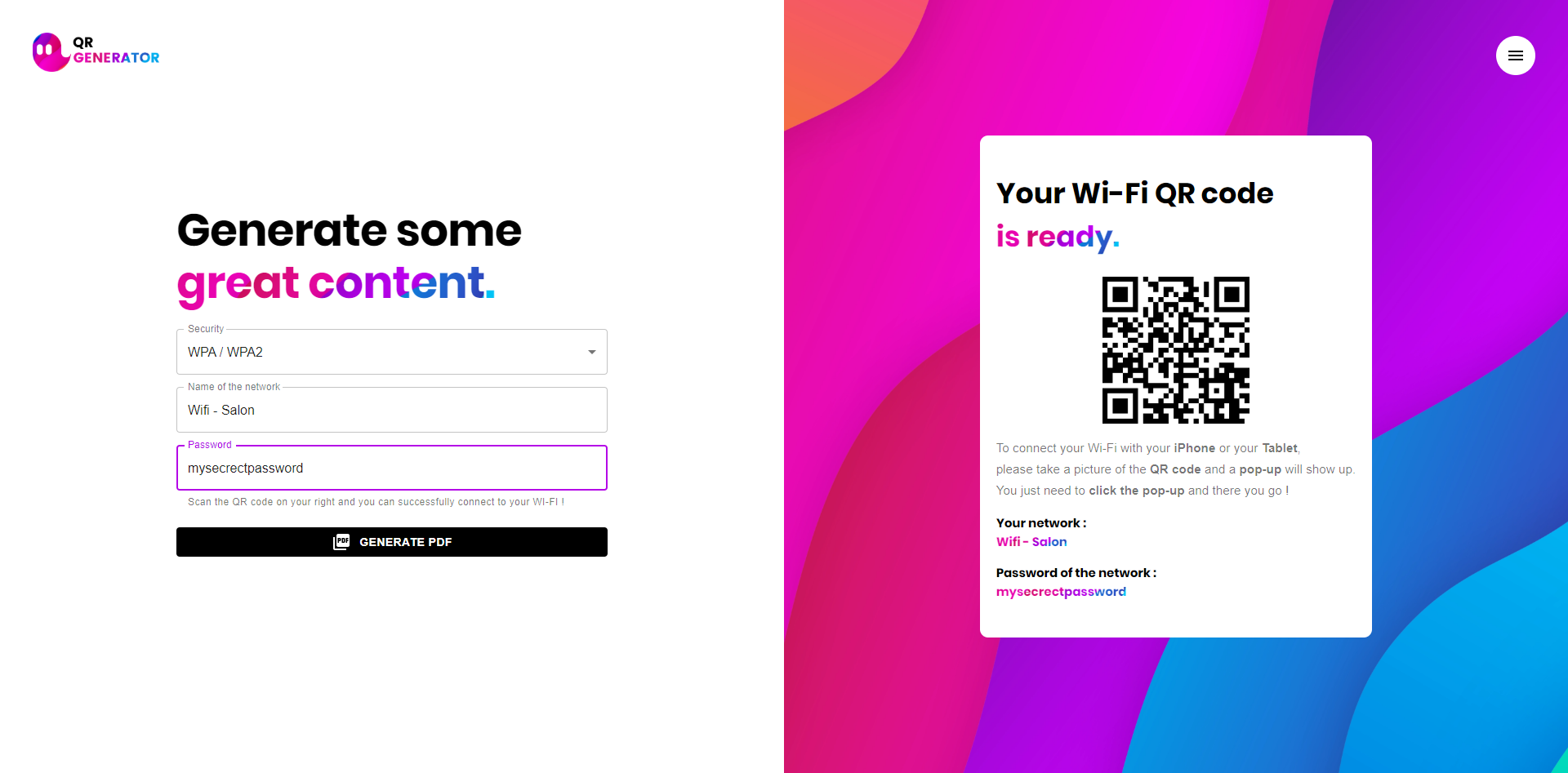 - Generate QR code with simplicity !