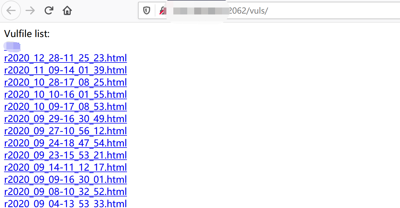 扫描器结果输出到配置文件相同目录(默认为vuls/),则可以通过web界面访问。