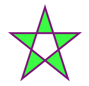 <polygon points="100,10 40,198 190,78 10,78 160,198" style="fill:lime;stroke:purple;stroke-width:5;fill-rule:evenodd;" />- The cool thing about