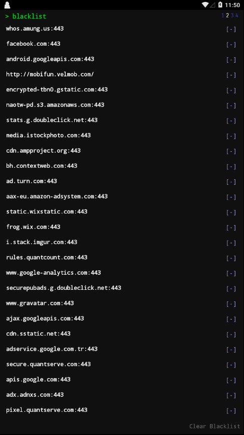 Proxy Port: Local Proxy port for connection Max. Buffer: Maximum response buffer size in bytes Match Type: Full: Block if request URI equals blacklist item Keyword: Block if request URI contains blacklist item Blacklist Response: Response status which will be sent to blocked address Splash Screen: Show splash screen when app starts