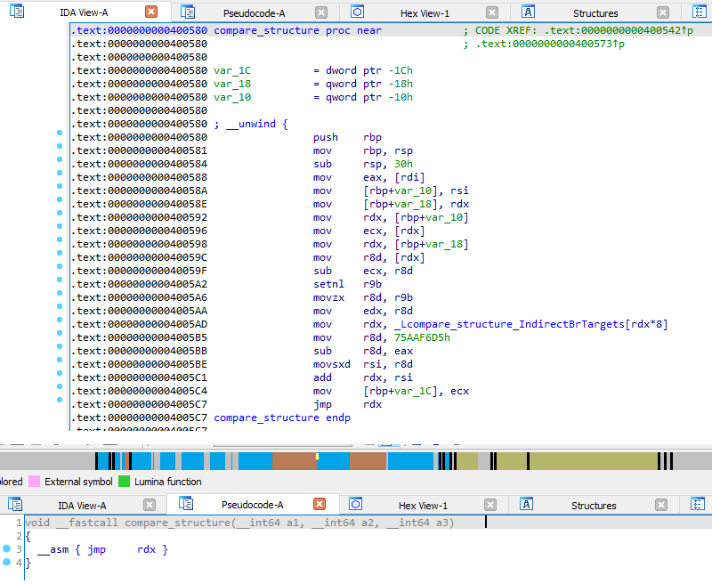• 间接跳转,并加密跳转目标(-mllvm -irobf-indbr)
