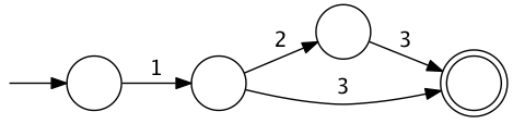This represents the union of the two automata, and returns an automaton which will either accept 1, 2, 3