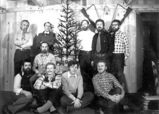Stoją: Marek Grześ (geomorfolog), Przemysław Czyszek (magnetyk), Bronisław Głowicki (meteorolog), Wojciech Skubiszak (geofizyk), Antoni Barański (meteorolog). Siedzą: Andrzej Molek (sejsmolog ), Paweł Ogrodnik (radiooperator), Marek Kibler (mechanik), Janusz Niewiadomski (kierownik, geofizyk), Jan Dziaczkowski (lekarz).