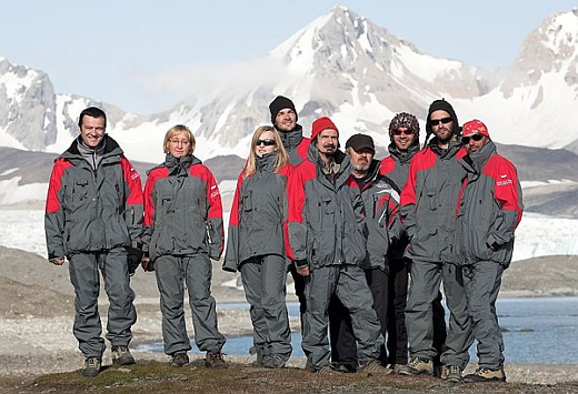 Stoją od lewej: Mikołaj Karwat (informatyk), Dariusz Ignatiuk(kierownik, glacjolog), Marta Kondracka (geofizyk), Mirosław Szumny (meteorolog), Paweł Strzelewicz (2, środowisko abiotyczne), Łukasz Stachnik (środowisko biotyczne), Damian Chwiałkowski (mechanik), Maciej Benedyk (z-ca kierownika, meteorolog), Piotr Andryszczak (geofizyk, elektronik), Dagmara Bożek-Andryszczak (administrator, dydaktyk EDUSCIENCE).