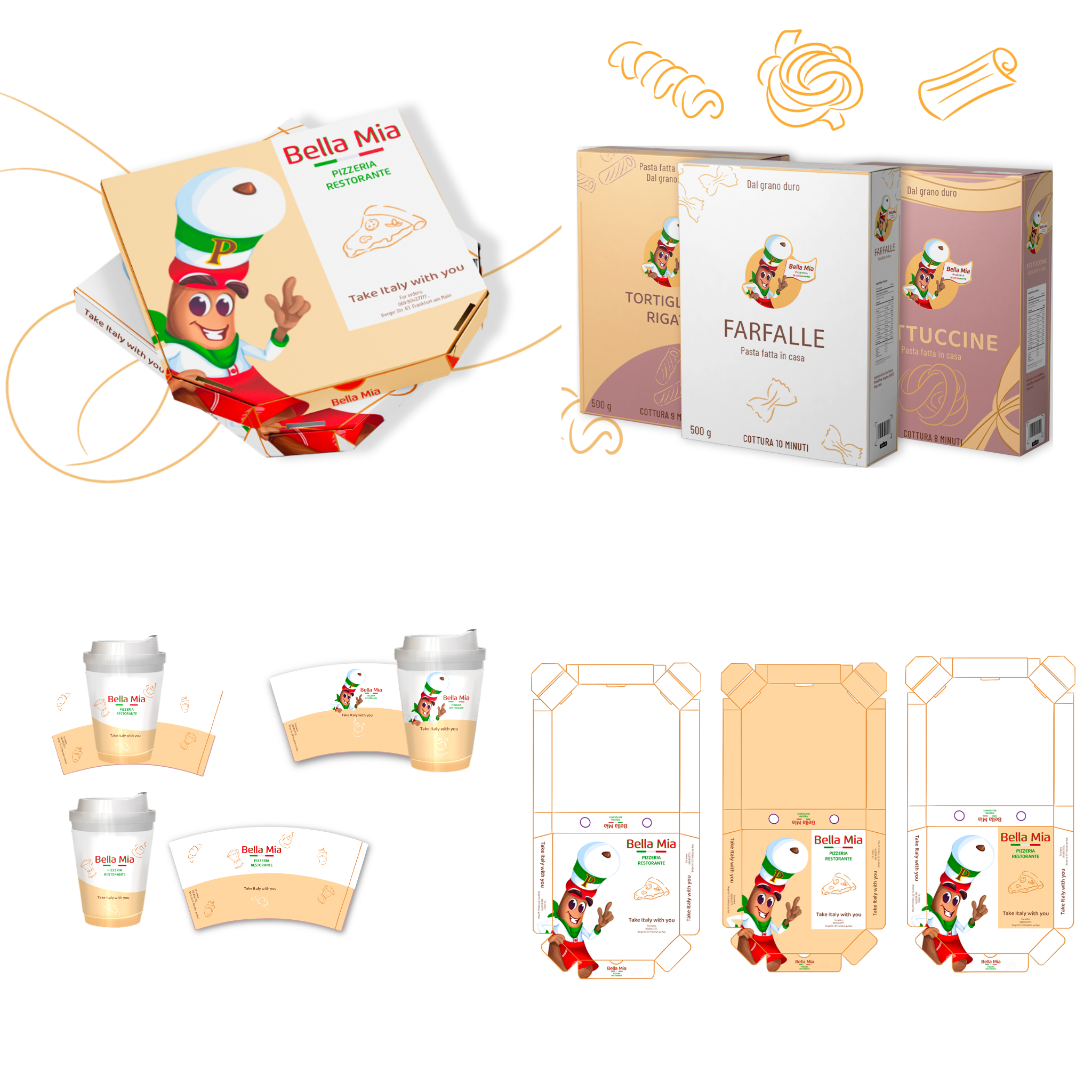 Разработка персонажа и дизайн упаковки для домашнего ресторана итальянской традиционной кухни