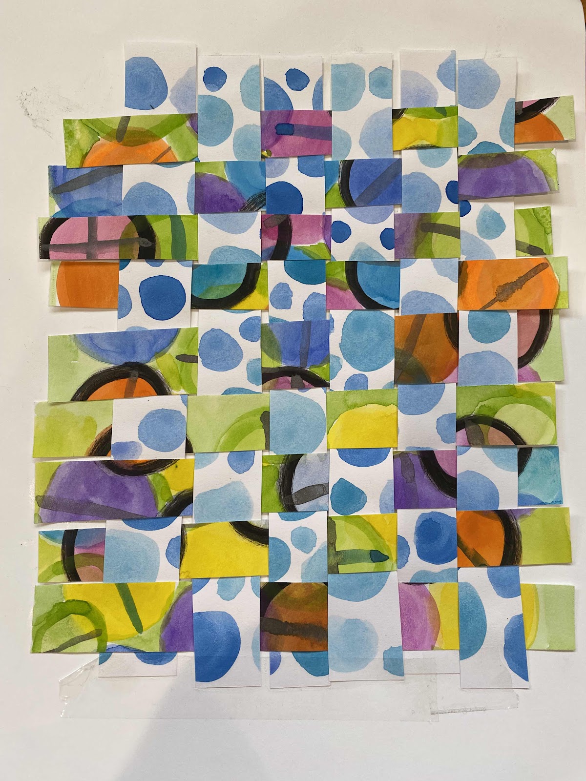 And then throwing caution to the wind, I am weaving the paper. See the tape at the bottom of this photo - it helps to secure the weaving