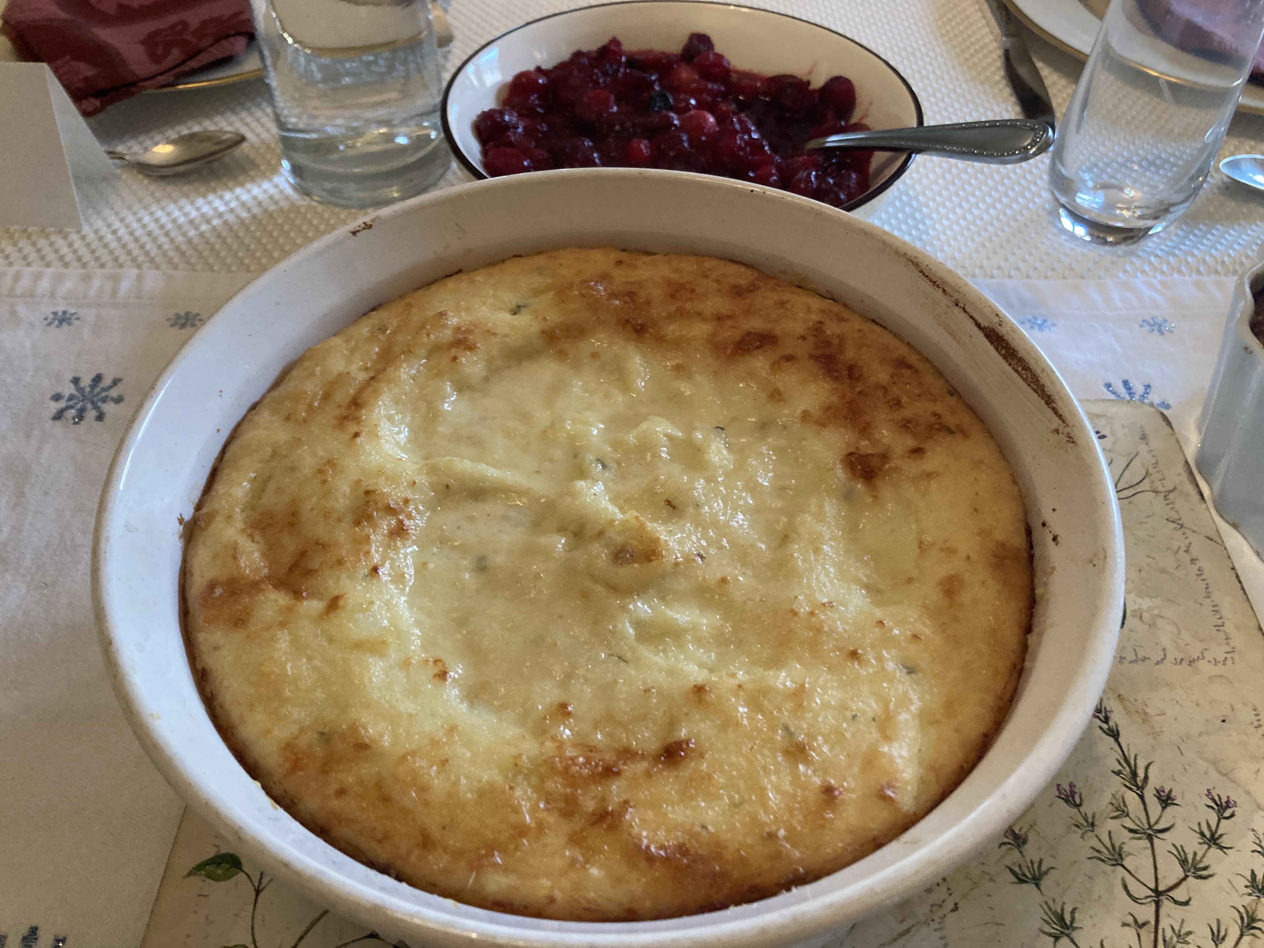A couple of weeks before Thanksgiving, this recipe popped up on my Facebook feed. I loved that it is a make ahead recipe. You make the recipe to the final step, then put it in the fridge overnight. Before dinner, assuming you have room in the oven, you pop the potatoes in the oven and bake until golden brown. Delicious, and very rich. I don’t think I would make my mashed potatoes like this for a regular dinner, but for a holiday meal? Absolutely. Recipe copied and pasted from Ina Garten, here. Goat Cheese Mashed Potatoes Ingredients Directions Preheat the oven to 375 degrees F. Place the potatoes, garlic, and…