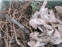 除去土壌をふるいにかけ、異物(草木の根や石など)を除去します。