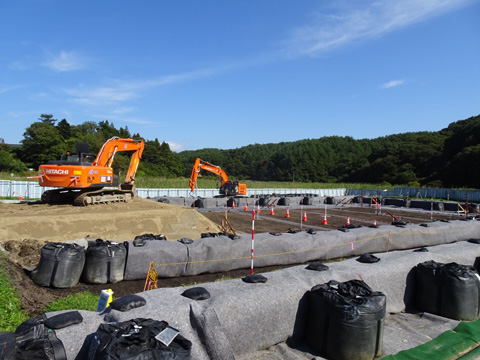 除去土壌を再生資材化する作業を終え、復興再生利用します。