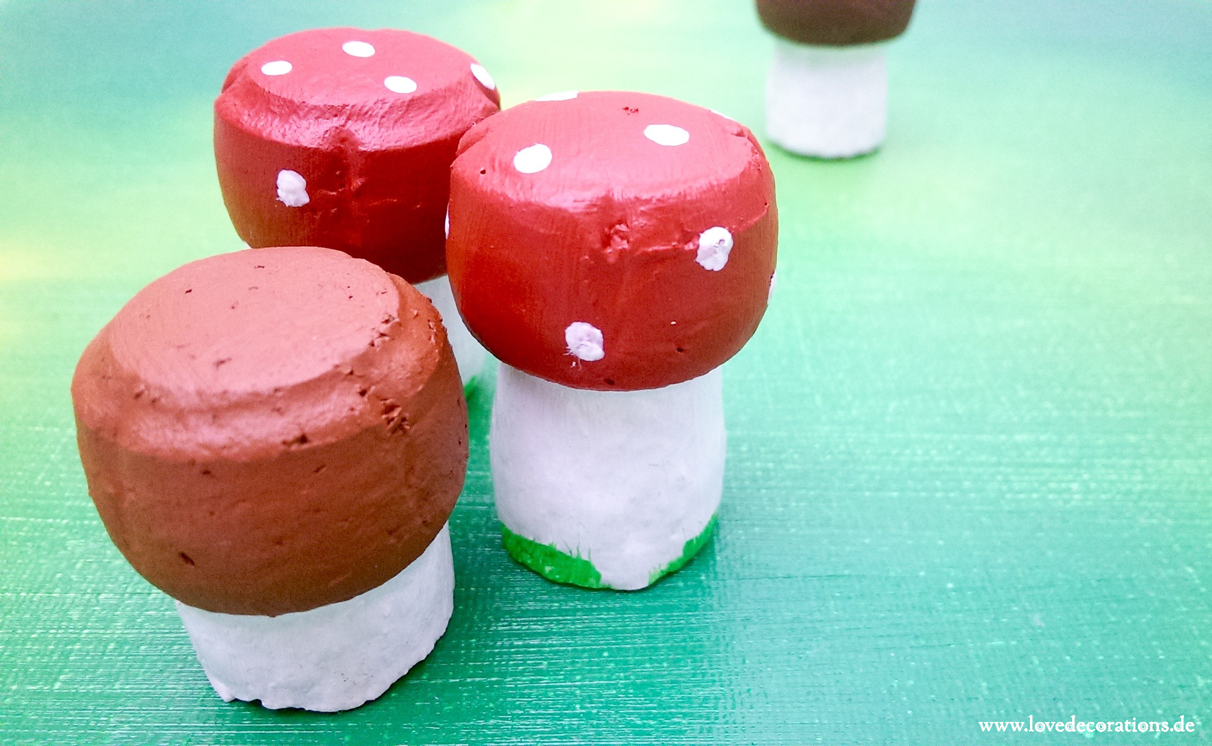 3. Pilze! – Bingo! Du hattest zwar letztes Jahr schon mit Farbe aus Kronkorken Pilze gezaubert. Aber dieses Jahr – noch nichts dergleichen! 🙂