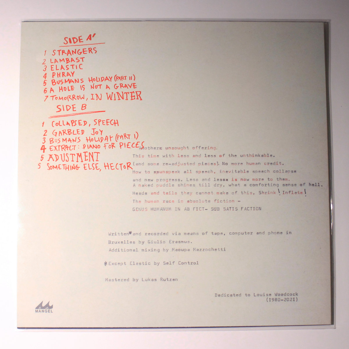 All Tapes and 7" are shipped without insurance+tracking! If you'd like us to add it: drop us a line!