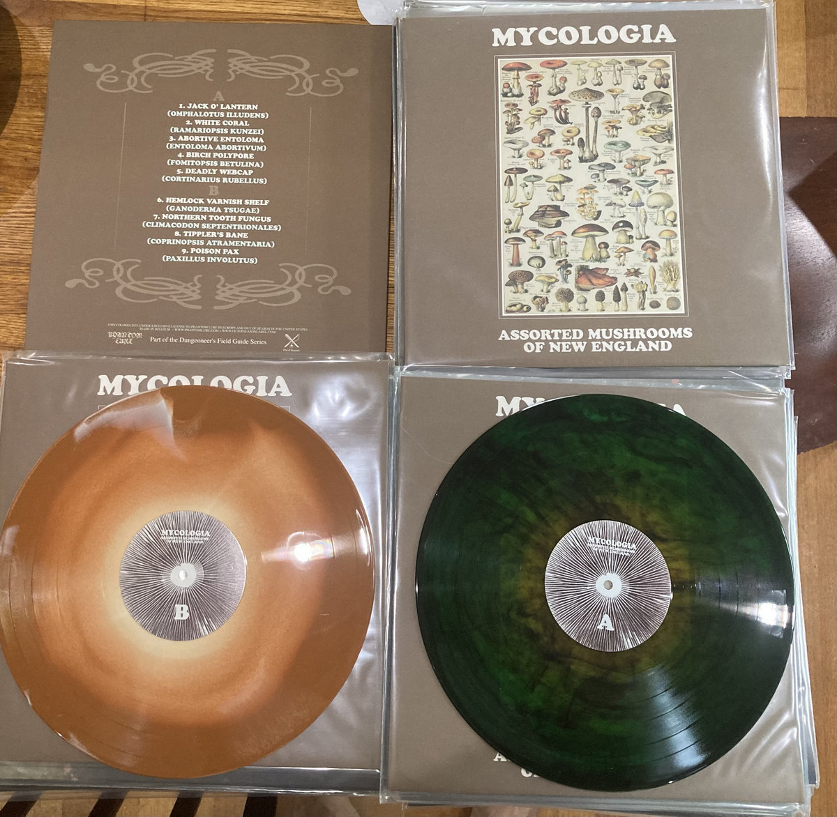 Brown vinyl of Assorted Mushrooms of New England vol 1 reissued by PL and Out of Season this year.