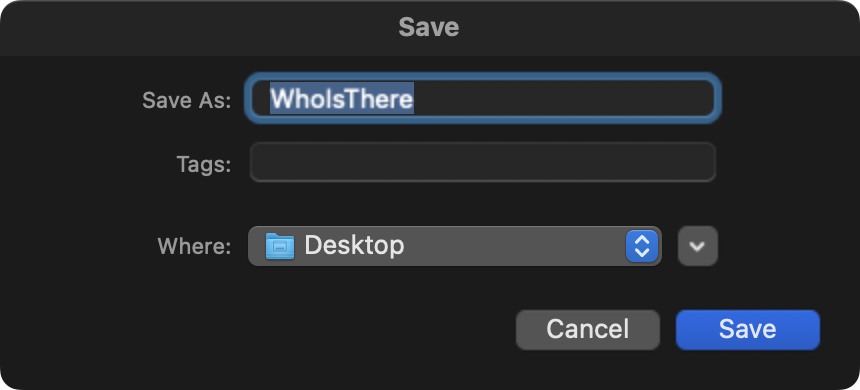 Next to the settings icon, is the save icon. Click this to save KnockKnock's findings (as JSON):