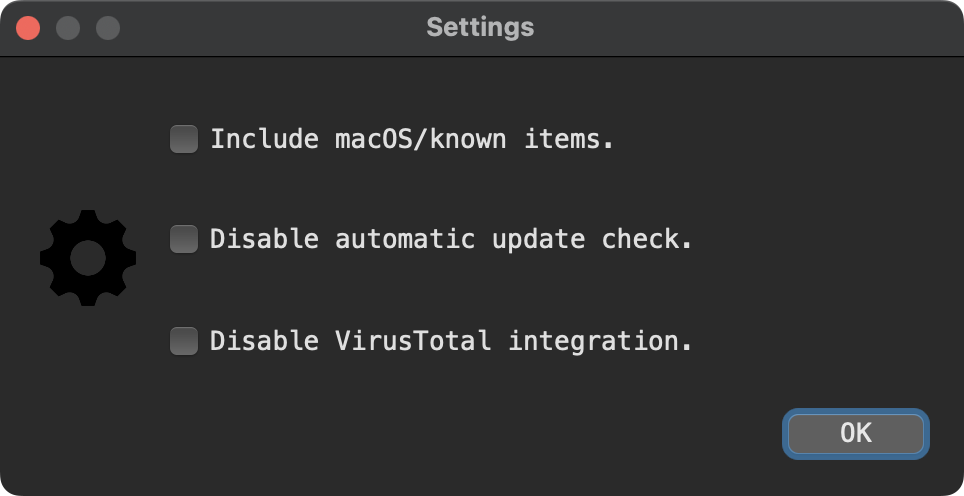 To control or influence the execution of KnockKnock, click the 'Settings' icon found at the bottom left of the window:
