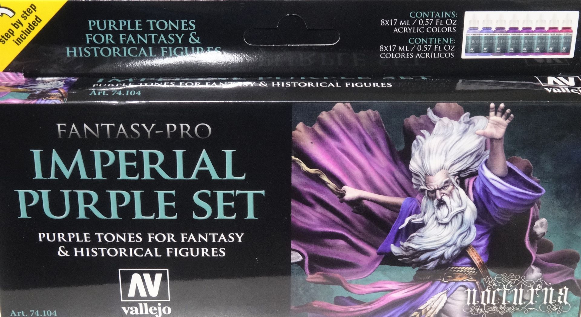 You'd think that having decided to paint an army purple, it would all be easy from there? But I couldn't settle on any of the three purples that I already owned, and spent ages mucking about trying to find just the right colour. In the end, I stumbled upon this boxed set from Vallejo:
