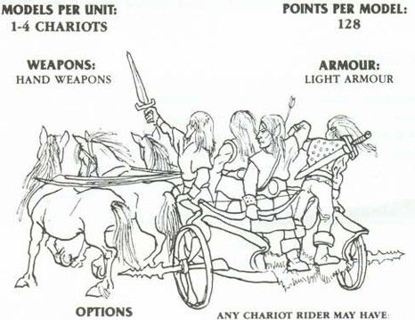 1 x Wain Lord Chariot                 (Shield, Longbow, Javelin)                                        144 points