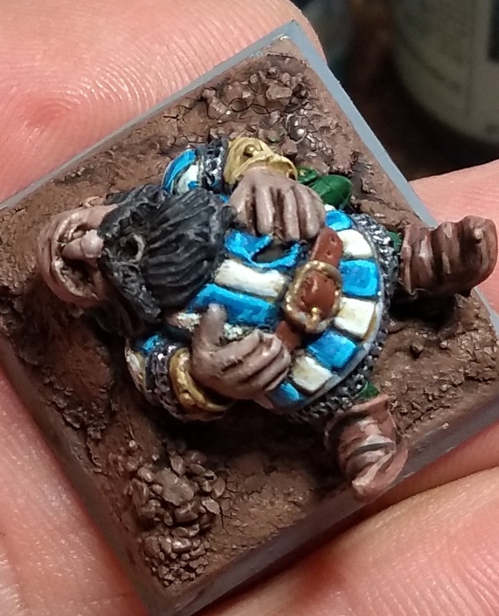 This dwarf was painted in two main sittings - I took a long break when I applied the ground paint and another when I applied the wash for the ground.