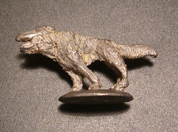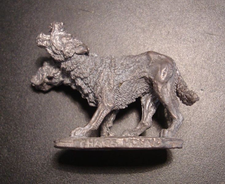 Quite simply, a ruddy great dog. I put them on cavalry bases - the official base size in 3rd ed is 25 x 25 mm for warhounds and chaos hounds, so I could actually treat these as two per model. They are painted a very dark brown with squinty evil eyes and pointy teeth, not that the picture shows any of that.