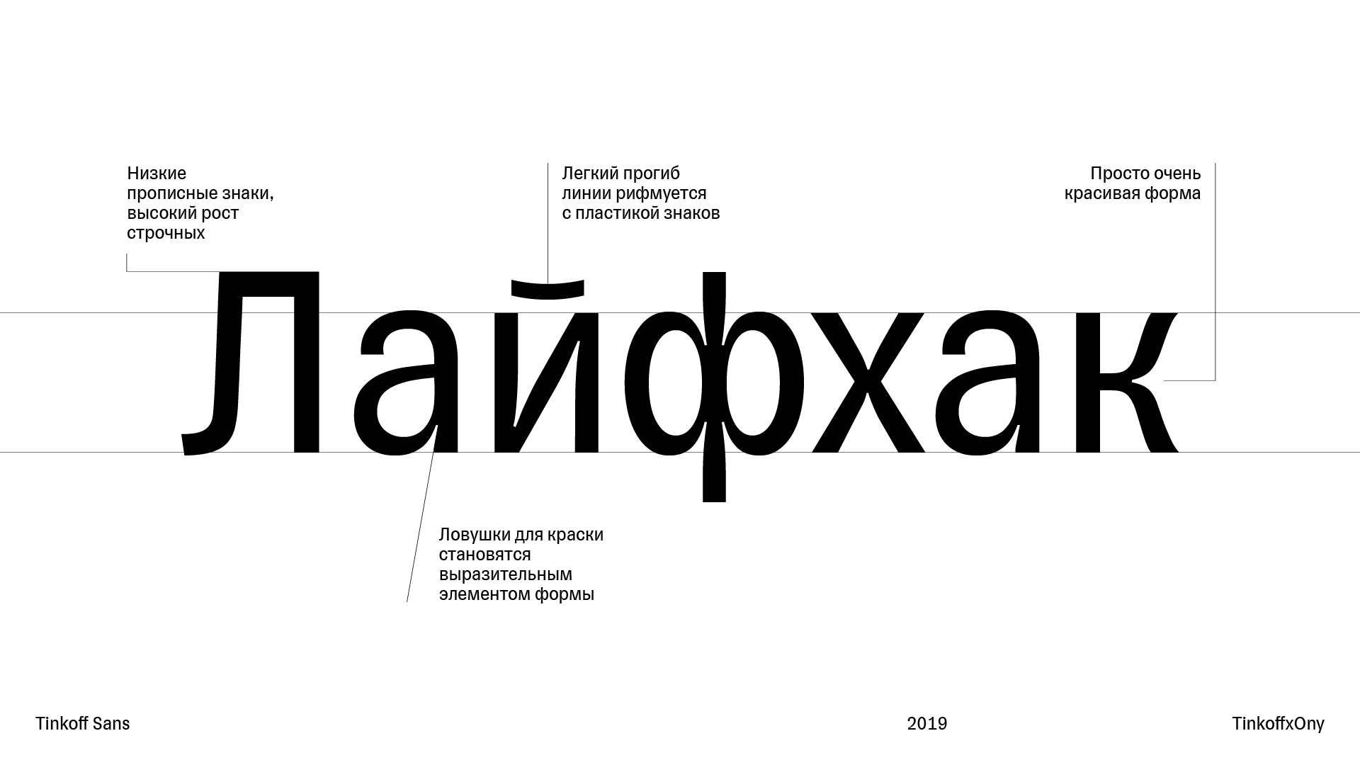 В процессе работы над стилем мы разработали два новых шрифта: они помогут компании отстроиться от конкурентов и начать разговаривать на собственном языке. Первый — это шрифт, которым набирается название компании и всех ее сервисов. Он широкий, основательный, подчеркивающий уверенный характер продуктов Тинькофф. Во втором, текстовом шрифте, мы пошли совсем другим путем и предложили нехарактерный для банковской сферы гротеск. У него необычные зауженные пропорции, удобные для использования в кириллической среде, а пластика отражает дерзость и смелость.
