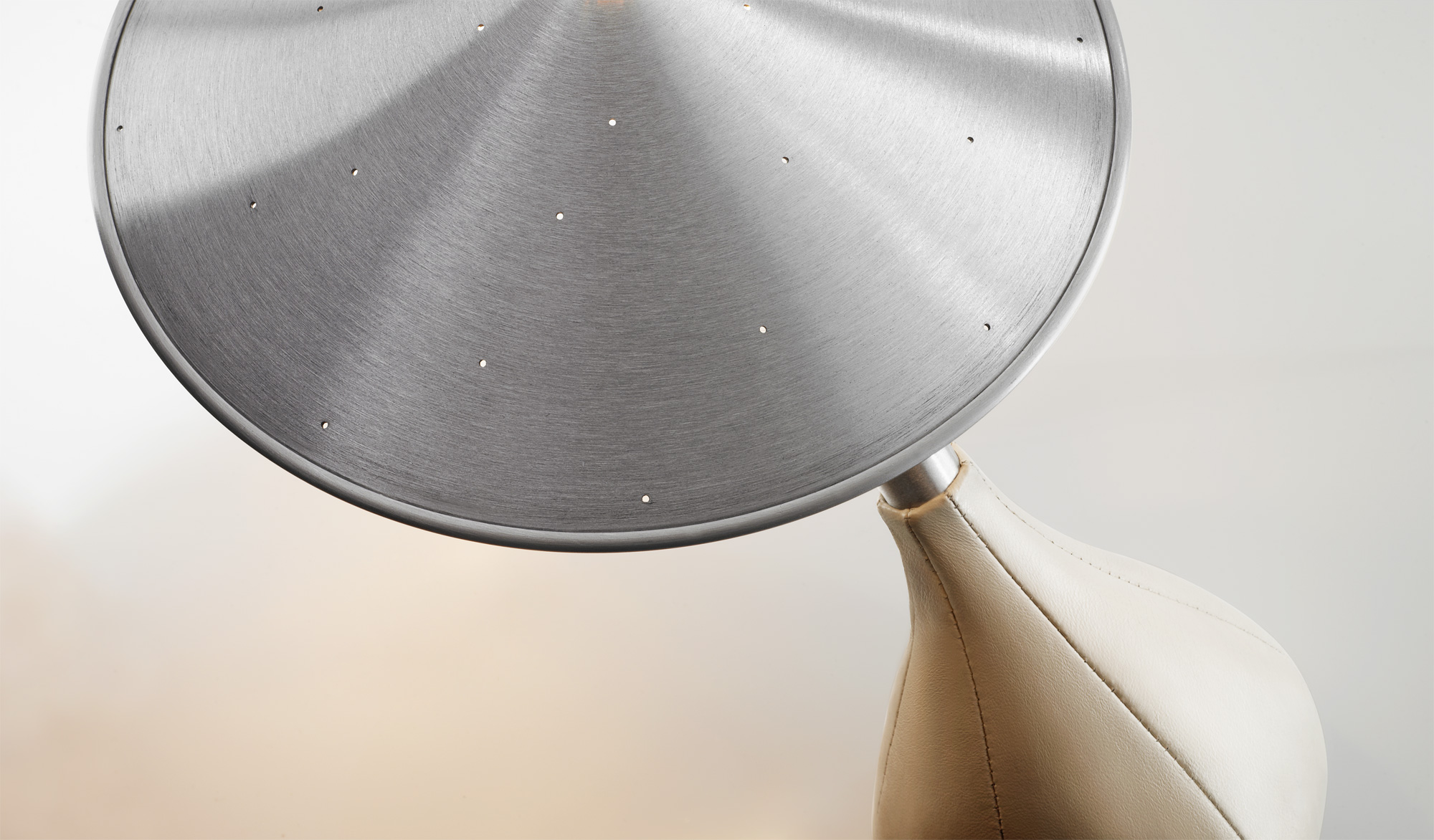 As his very first product, Piccola is the original embodiment of Pablo Pardo’s “less is more” design philosophy. Created as a personal utility lamp, Piccola’s form is minimal, but also tactile, playful, and inviting of interaction. Supple Italian glove leather covers its soft, pliable base, which a user can tilt to any angle while its aluminum shade floats to remain level. It is this malleable base that maintains Piccola’s sensitivity to any position — sensitivity intended to make every articulation organic and personal. Piccola is part of the San Francisco Museum of Modern Art’s permanent collection.