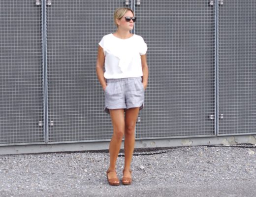 Der Mantel ist etwas oversized geschnitten und fällt gerade. Eine leichte Taillierung ist nur über die Form des Rückenteils gegeben. Genäht habe ich eine Größe 38. Im Nachhinein wäre eine 36 ausreichend gewesen. Auf Grund des etwas dickeren Futters und den fehlenden Angaben zur Ärmelweite habe ich mich für die größere Größe entschieden. An den Schultern habe ich um ca. 1,5 cm nach innen korrigiert und verschmälert. Die Länge des Schnittes ist auf eine Körpergröße von 162 cm -166 cm bemessen. Den Mantel habe ich vorab am Schnittmuster noch um 5 cm gekürzt.