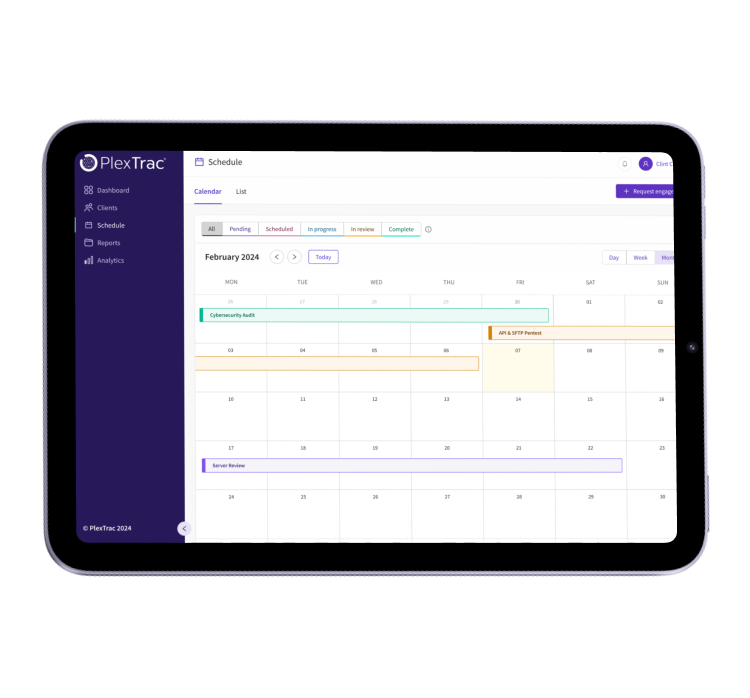 Built with team management in mind, PlexTrac’s Scheduler increases automation and collaboration to reduce the time and cost of preparing for new engagements.