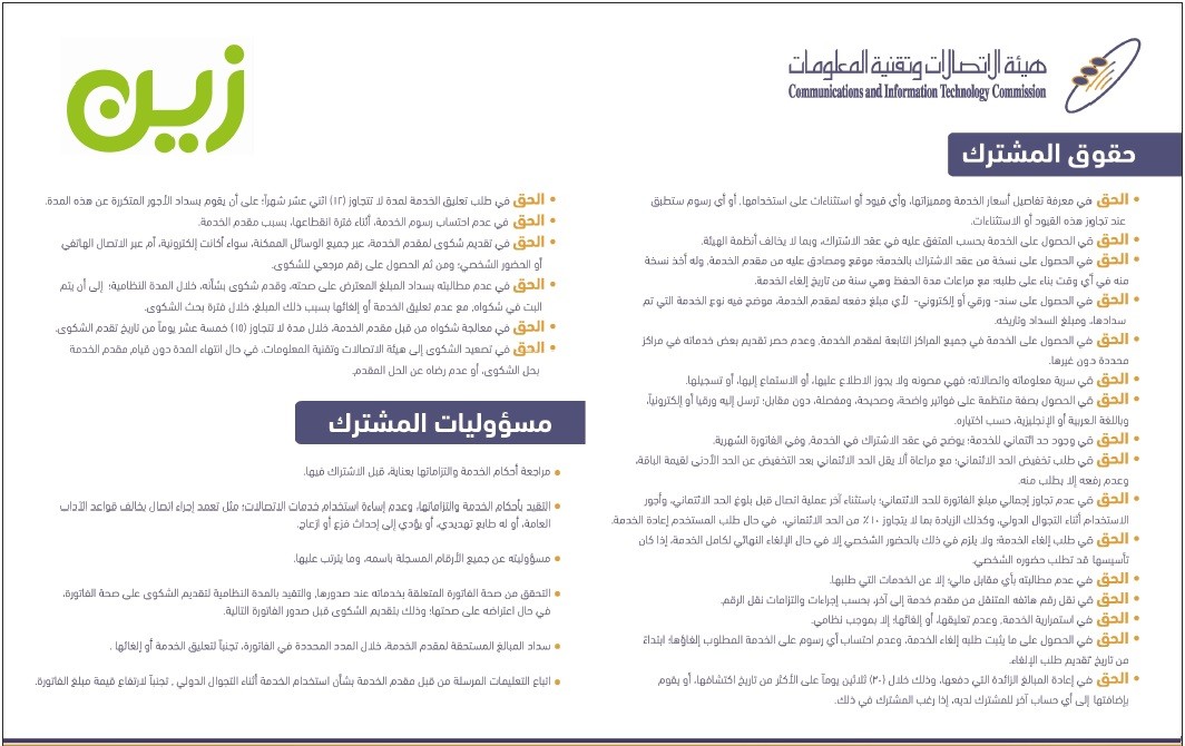 - The right to get the service as agreed in the subscription contract, according to CITC regulations.