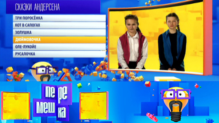 "Перемешке" смешаны верные и ошибочные ответы на вопросы из школьной программы и различных областей знаний, рассчитанные на эрудированных детей. В увлекательном соревновании умов ребята сражаются за главный приз – компьютер. "Нам всегда есть что перемешать!"